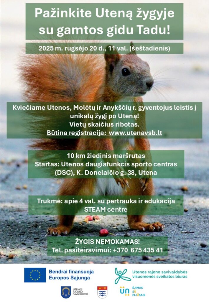 GALI DALYVAUTI TIK UTENOS R., MOLĖTŲ R., ANYKŠČIŲ R. GYVENTOJAI! DALYVIŲ SKAIČIUS RIBOTAS. BŪTINA REGISTRACIJA.