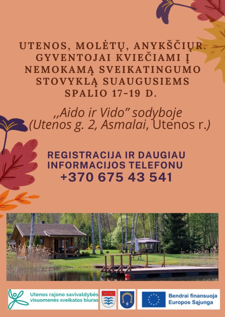 Kviečiame registruotis Utenos , Molėtų, Anykščių r. gyventojus į suaugusiųjų stovyklą Utenos r.