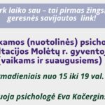 Molėtų rajono gyventojams teikiamos individualios nuotolinės psichologo konsultacijos, kurių metu konsultuojami asmenys, norintys mesti rūkyti. Psichologė Eva Kačerginskytė pasidalijo įžvalgomis […]