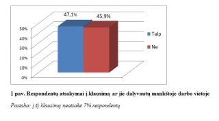 Į klausimą ar dalyvautumėte mankštoje darbo vietoje teigiamai atsakė 47,1 % respondentų (žr. 1 pav.).