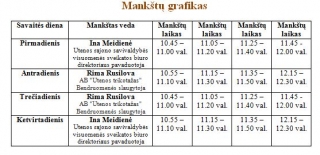 Mankštos AB ,,Utenos trikotažas” patalpose vyks iki gegužės 28 d. Mankštas veda Utenos rajono savivaldybės visuomenės sveikatos biuro direktoriaus pavaduotoja Ina Meidienė ir AB ,,Utenos trikotažas” bendruomenės slaugytoja Rima Rusilova.