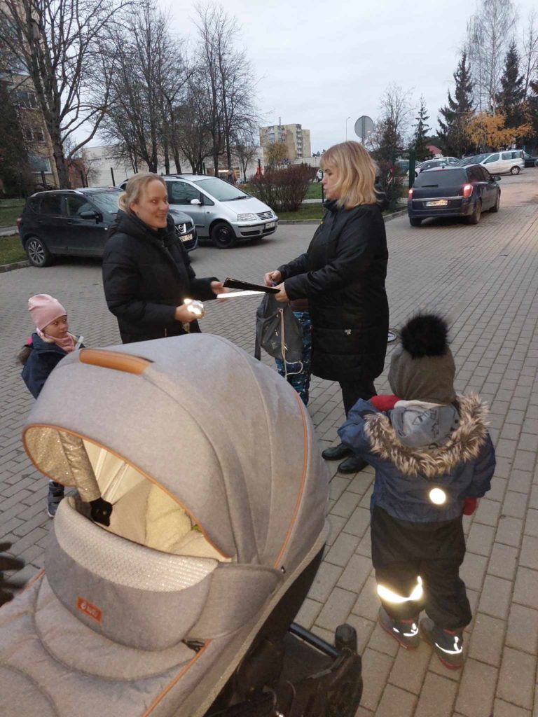 Rudens sezonas, ypač tamsusis paros metas – vienas pavojingiausių vairuotojams ir pėstiesiems, nes matomumas keliuose itin sumažėja, todėl privalome pasirūpinti savo, savo vaikų, artimųjų bei pažįstamų saugumu. Tamsiuoju paros metu ar esant blogam matomumui būtina naudoti saugos priemones ( atšvaitą, šviečiantį žibintą, ryškiaspalvę liemenę su šviesą atspindinčiais elementais ar pan.). Atšvaitas, žinoma, yra viena pigiausių ir paprasčiausių priemonių, todėl lapkričio mėn. 15 d. Utenos mokyklos – vaikų darželio “Varpelis” vaikams, tėveliams bei darbuotojams buvo surengta akcija “Būk matomas!”, kurios metu darželio kieme visuomenės sveikatos specialistė dalino atšvaitus ir linkėjo saugiai grįžti į namus bei visada būti matomais ir saugiais kiemuose, gatvėse ir keliuose.