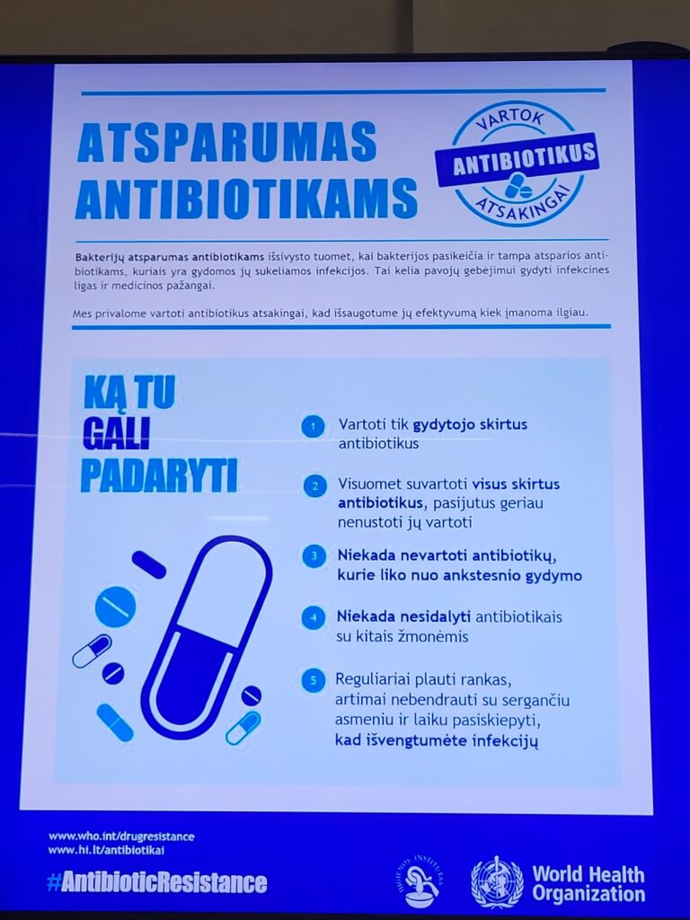 Lapkričio 18-24 d. visame pasaulyje kalbama apie vieną didžiausių iššūkių sveikatos sistemoje – antimikrobinį atsparumą. Bakterijų atsparumas antibiotikams kelia grėsmę žmonių sveikatai, todėl mes privalome vartoti antibiotikus atsakingai, kad išsaugotume jų efektyvumą kiek įmanoma ilgiau. Europos supratimo apie antibiotikus dieną bei Pasaulinę supratimo apie antimikrobinį atsparumą savaitę Utenos Adolfo Šapokos gimnazijos pirmokai minėjo netradicinėse biologijos pamokose, kuriose protų mūšio metu gilino žinias apie infekcinių ligų sukėlėjus, kaip apsisaugoti nuo jų, kaip stiprinti imunitetą, kaip ir kada vartoti antibiotikus ir pan.