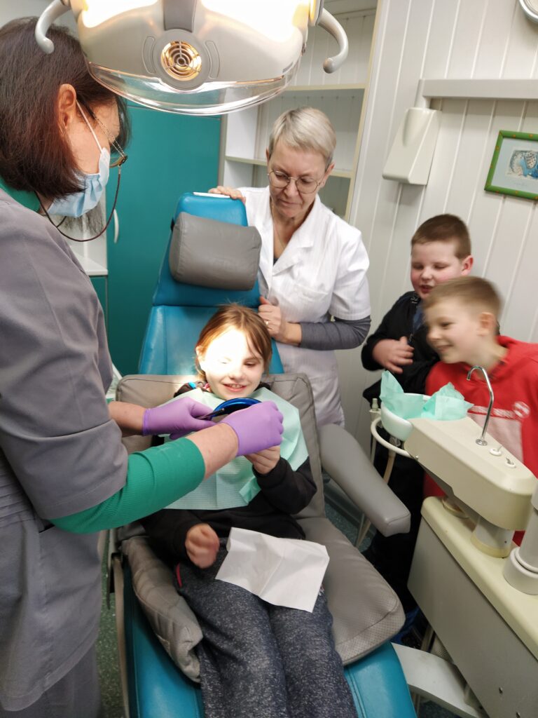 Kovo 1 d. Giedraičių Antano Jaroševičiaus gimnazijos antros klasės mokiniai, kartu su sveikatos priežiūros specialiste ir klasės vadove, lankėsi gyd. Linos Rimavičienės odontologijos kabinete. Gydytoja papasakojo vaikams apie dantų anatomiją, priminė, kaip taisyklingai reikėtų dantukus valyti ir kokio maisto reikėtų vengti. Antrokai pasitikrino žinias, uždavė odontologei rūpimus klausimus, o drąsiausieji sėdo pasitikrinti dantukų. Mokiniai į mokyklą grįžo nešini naujais dantų šepetukais ir dantų pasta bei davę gydytojai pažadą dantis valyti ryte ir vakare.