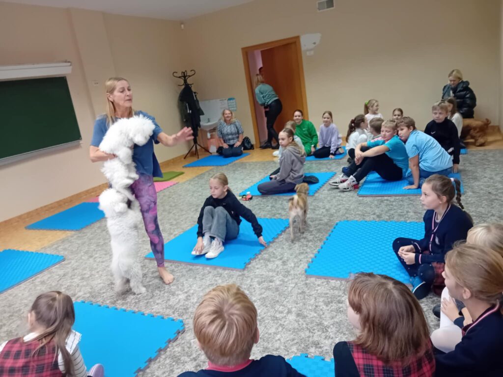 Spalio pradžioje minime Pasaulinę gyvūnų dieną. Šiemet “Augintinio diena” Molėtų pradinėje mokykloje vyko spalio 11 d. (penktadienį) nuo 8.30 iki 10.00 val. Vaikus džiugino augintinių paroda. Vyko veikla „Joga su augintiniu“, kurią vedė Utenos visuomenės sveikatos biuro direktorės pavaduotoja Ina Meidienė. Šuniukų joga – tai tokia jogos forma, kai įprastą jogos praktiką papildo šuniuko draugystė. Ši veikla sukurta siekiant derinti jogos teikiamą fizinę ir emocinę naudą su džiaugsmu ir ramybe, kurią suteikia laikas praleistas su gyvūnais. Jogos su šuniukais metu dalyviai atlieka jogos praktikas, tokias kaip kvėpavimo pratimai, tempimo pratimai ir meditacija, o šuniukai laisvai juda, suteikdami papildomą džiaugsmo ir atsipalaidavimo jausmą. Joga su šuniukais yra unikali ir naudinga veikla, kurią turėtų išbandyti kiekvienas. Tai ne tik puikus būdas pagerinti fizinę ir psichinę sveikatą, bet ir prisidėti prie gyvūnų gerovės. Ši praktika teikia džiaugsmo ir žmonėms, ir šuniukams.
