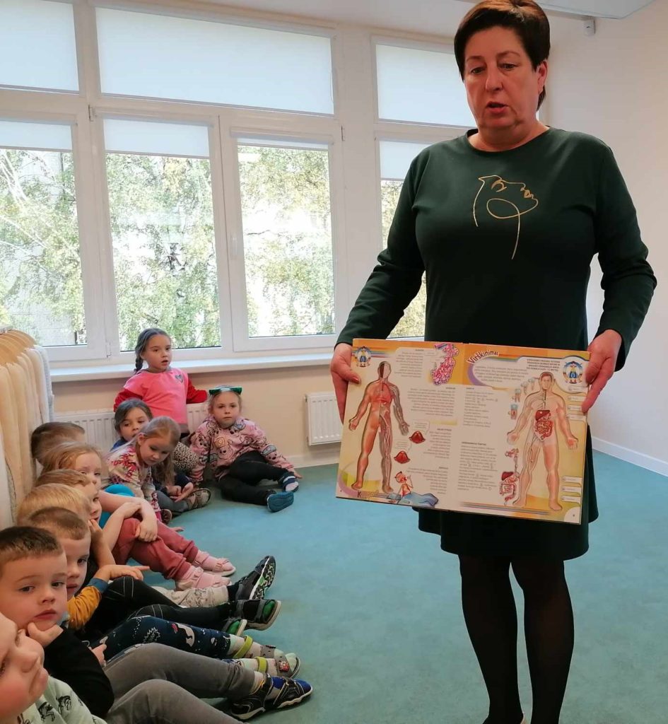 Utenos vaikų lopšelyje – darželyje „Pasaka“ vyko projektinės veiklos „Augu sveikas ir saugus“, „Mokausi gyventi sveikai“, kuriose dalyvavo visuomenės sveikatos specialistė, vykdanti sveikatos priežiūrą mokykloje. Vaikai kalbėjosi apie žmogaus kūno dalis, higieną, sveiką gyvenseną, mitybą bei saugumą.