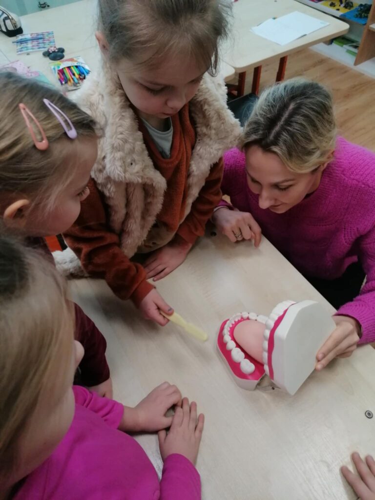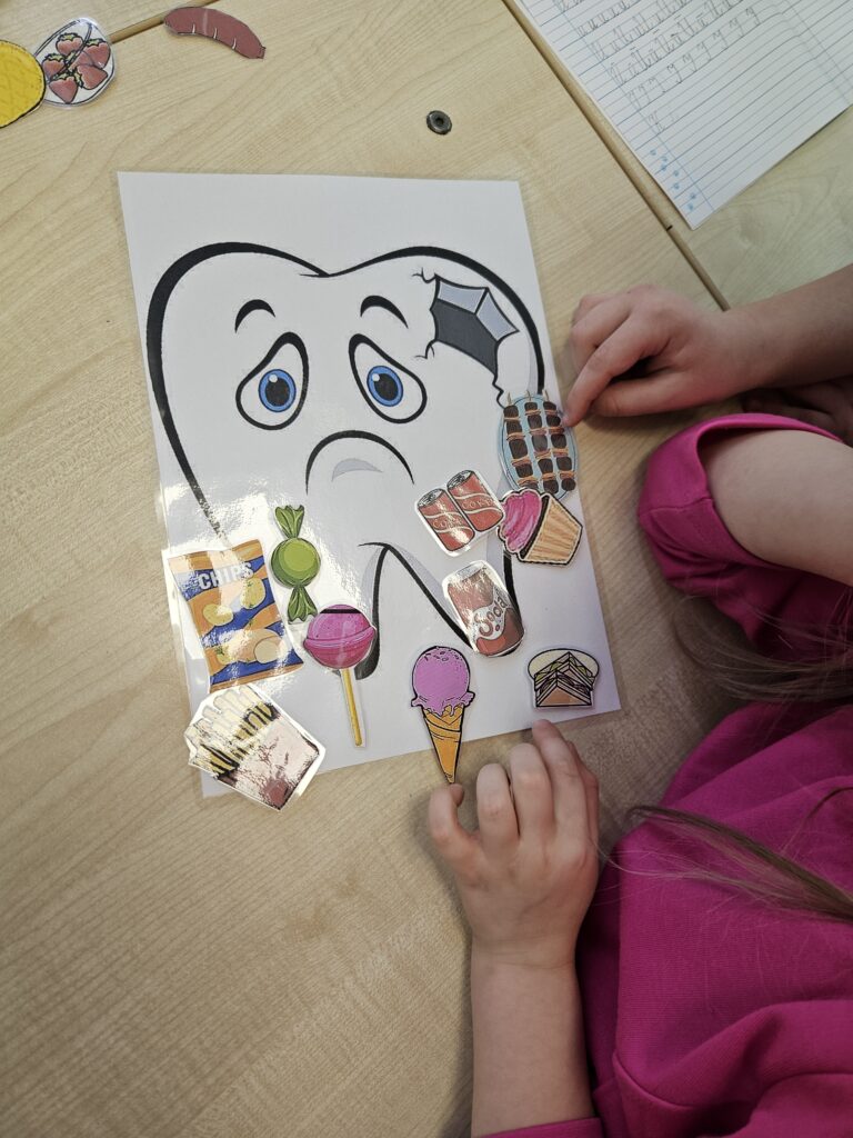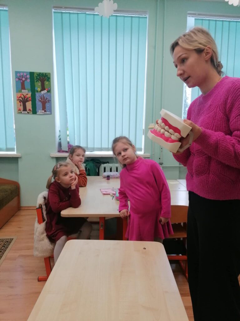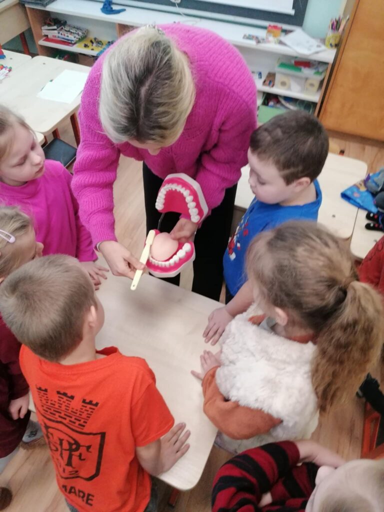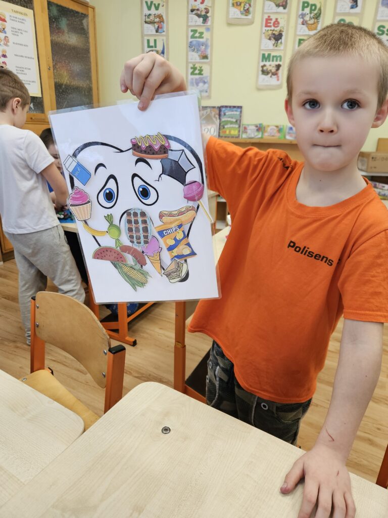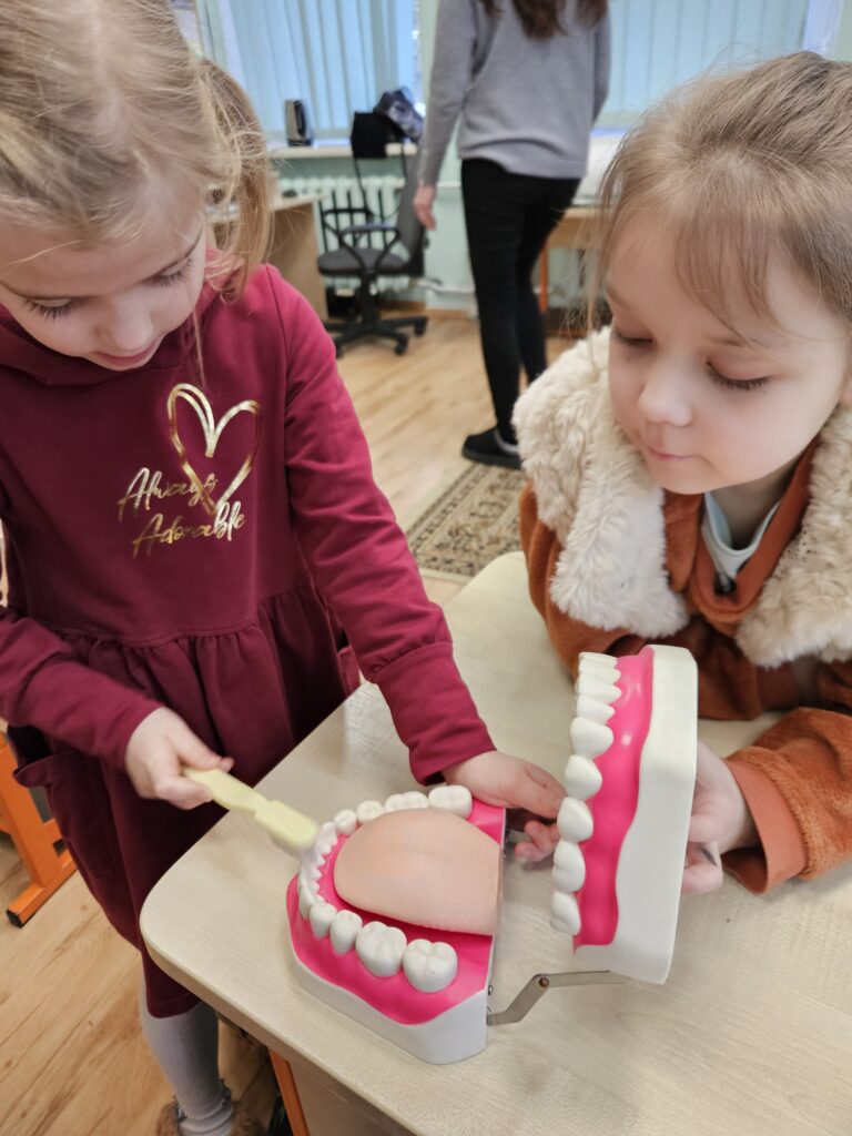 Veikla prasidėjo nuotaikingu filmuku apie tai, kodėl kartais nesinori valytis dantų. Po filmuko sekė praktinė užduotis – dantų valymo pamokėlė. Kiekvienas turėjo galimybę išbandyti išvalyti manekenui dantis ir kartu pasimokyti teisingų valymo krypčių, kurios padeda išvengti apnašų ir bakterijų kaupimosi. Kūrybinėje dalyje vaikai klijavo paveikslėlius ant dantukų. Vieniems dantukams rinko sveikus maisto produktus, tokius kaip obuoliai, morkos, mėsa, pieno produktai ir t.t., ir stebėjo, kaip jis atrodo stiprus ir laimingas. Kitam dantukui klijavo nesveikus produktus – traškučius, saldainius, gazuotus gėrimus – ir pamatė, kaip jis tampa liūdnu bei „sergančiu“. Kiekvienas vaikas gavo dovanų po dantų šepetuką! Ši veikla buvo puikus būdas vaikams paaiškinti, kad dantų valymas gali būti smagus ir reikalingas, kad apsaugotume dantukus nuo „blogiukų“. Veiklą organizavo visuomenės sveikatos specialistė, vykdanti sveikatos priežiūrą mokykloje Gabrielė Kutkė.