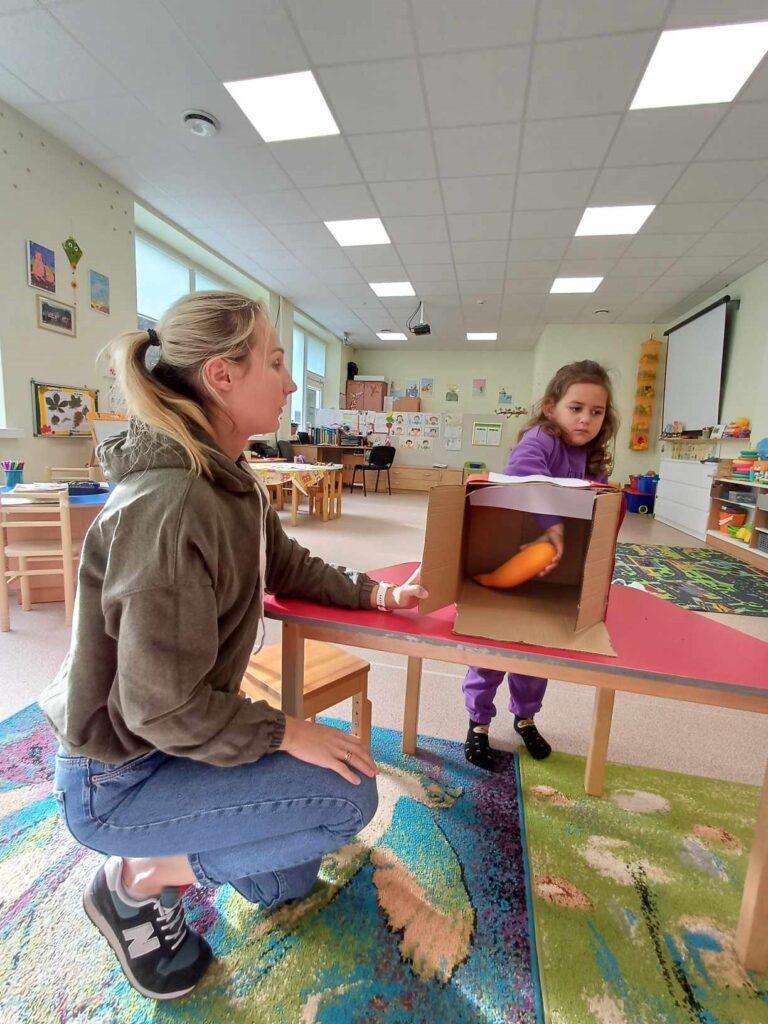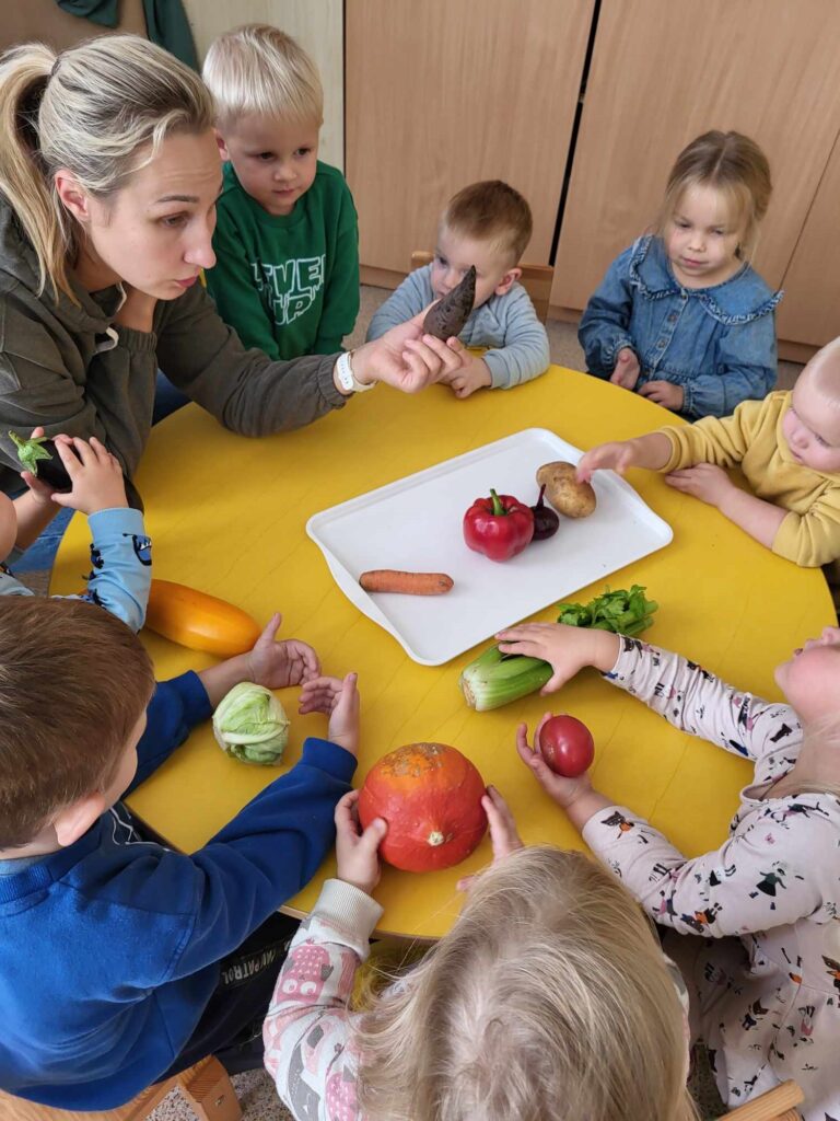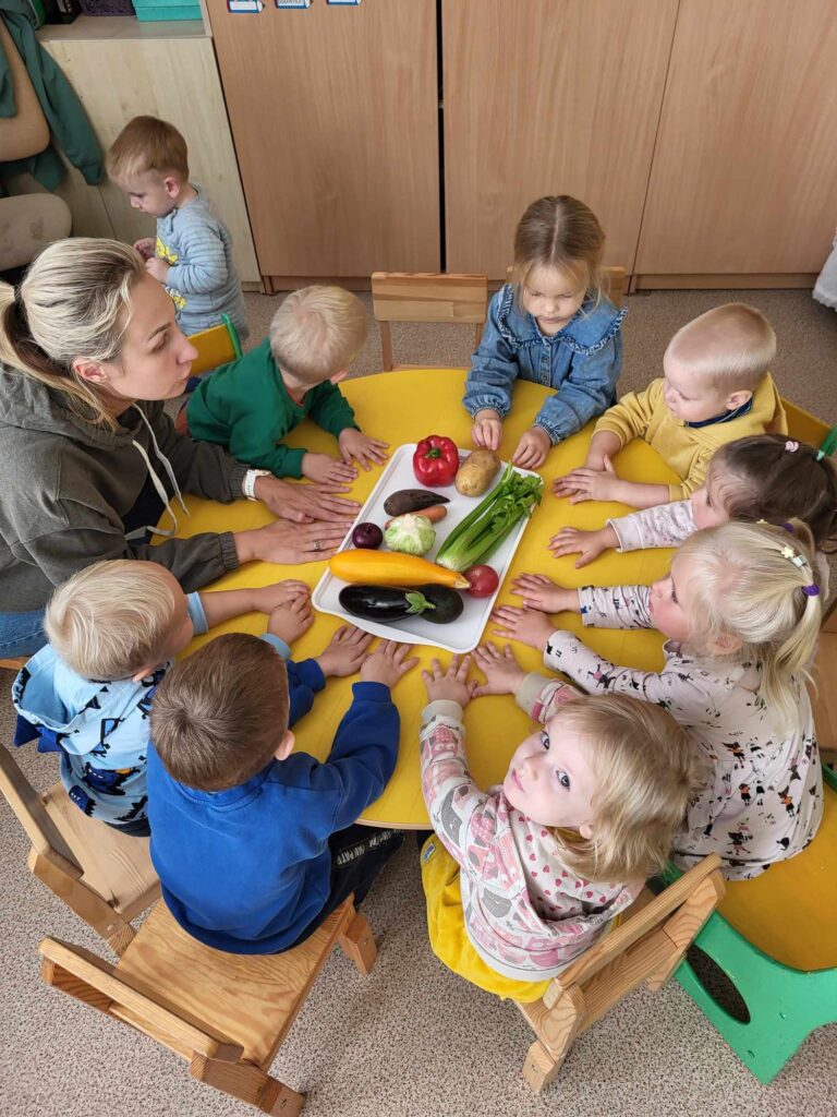 Spalio 7-8 dienomis mažieji Užpalių gimnazijos atradėjai leidosi į įdomią kelionę, susipažindami su vaisiais ir daržovėmis. Kartu mokėmės pavadinimus, tyrinėjome skirtingas spalvas, formas ir tekstūras. Vaikai sužinojo, kaip svarbu valgyti vaisius ir daržoves ir kaip tai stiprina mūsų sveikatą! Ypač nudžiugino, kad vaikai žino, kaip atsiranda daržovės. Jie su entuziazmu dalijosi savo žiniomis apie sodinimą, auginimą ir ko reikia, kad daržovės užaugtų. Įdomiausia veikla buvo nematant tik lytėjimu atspėti, kas paslėpta dėžutėje. Baklažanas buvo daugiausiai entuziazmo sukėlusi daržovė, salieras dažnai vaikams priminė agurką. Dar turėjome ir užduotį vaisius ir daržoves nuspalvinti jų tikromis spalvomis, o jie taip stengėsi atrinkti spalvas. Ši veikla skatino ne tik vaikų smalsumą, bet ir draugiškumą. Mokymasis per žaidimą visada yra nuostabus nuotykis!