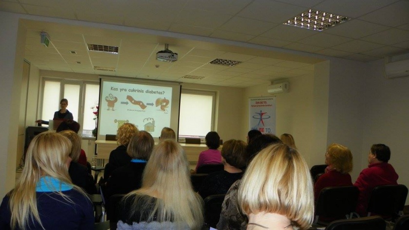Pranešimą skaitė ir su gyventojais bendravo gydytoja endokrinologė Vilija Guntaitė. Patarimais dalinosi Diabeto mokyklos slaugytoja Lina Kvedarienė, kuri pabrėžė, kad didžiausias daktaras yra pats žmogus ir kartais maži pokyčiai lemia didelius pasiekimus. Diabeto mokykla dirba pirmadieniais nuo 13 val. iki 17 val. Biuro direktorė Alma Gaidienė akcentavo, kad reikia visais įmanomais būdais siekti žmonių sąmoningumo prižiūrint savo sveikatą, ypač neramina, kad didėja cukriniu diabetu sergančių mokinių skaičius.