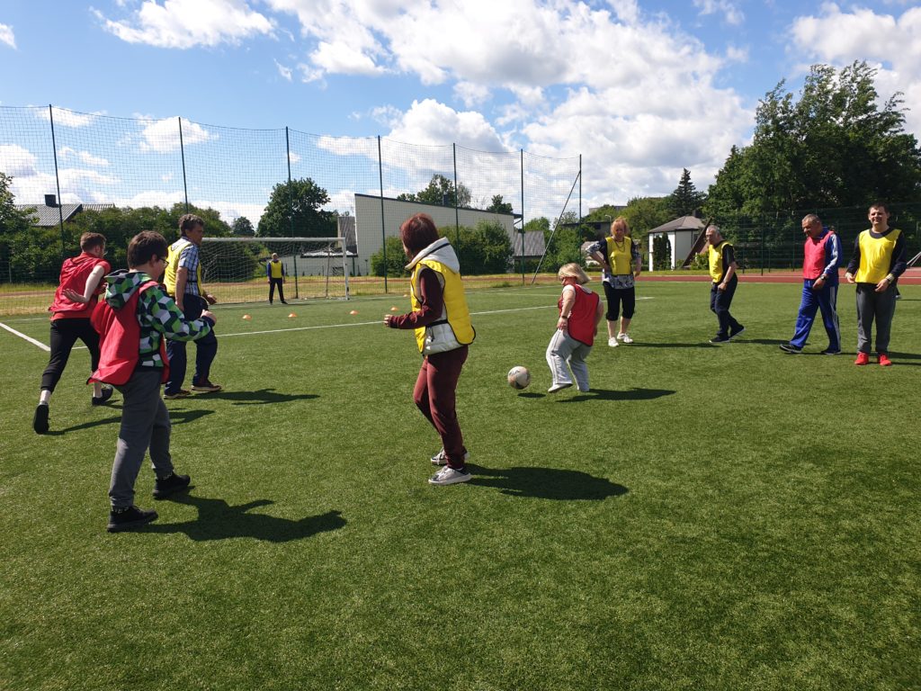 Futbolas vaikščiojant, kurį žaisti pirmieji Utenoje išbandė Utenos rajono neįgaliųjų draugijos pirmininkės Sandros Ragaišytės suburti bendraminčiai. Užsiėmimą vedė Utenos rajono savivaldybės visuomenės sveikatos biuro direktorė Alma Gaidienė ir futbolo komandos ,,Utenio moterys” kapitonė Ina Klezienė.