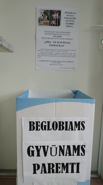 Molėtų gimnazijoje baigėsi gerumo akcija „Mes ne pliušiniai žaisliukai“, skirta pagelbėti Utenos rajono gyvūnų globos namų augintiniams, kuri gerumui suburia gimnazistus, jų tėvelius, mokytojų bendruomenę. Spalio 4 d. – Pasaulinė gyvūnų globos diena. Ta proga mokinių savanorystės grupė su sveikatos specialiste kvietė aukoti maisto, higienos priemonių, paklotų ar finansinės paramos globojamiems kačiukams ir šuniukams. Šaunių gimnazistų jautrumo ir gerumo dėka šiais metais buvo surinkta apie 80 kilogramų sauso ir konservuoto maisto, kruopų, higienos priemonių, nenaudojamų antklodžių ir paklotų. Paaukota pinigų suma maloniai nustebino – 200 eurų bus skirta gyvūnų gydymui, sterilizavimui ar kitoms veterinarinėms paslaugoms apmokėti. Kadangi Molėtų rajone nėra gyvūnų globos organizacijos, o benamius rajono keturkojus globoja kaimyninio rajono gyvūnų globos namai, tai tarsi ir pasako, kad nėra vieno ar kito rajono beglobiai. Į gatvę išmesti naminiai augintiniai yra mūsų – žmonių neatsakomybė, abejingumas ar nemokėjimas išspręsti kažkada buvusio šeimos nario kitos gyvenimo vietos klausimo. Kiekvienas išmestas į gatvę augintinis mums turėtų būti kaip gyvas priekaištas, kad tik žmogus gali elgtis taip neapgalvotai ir lengvabūdiškai…