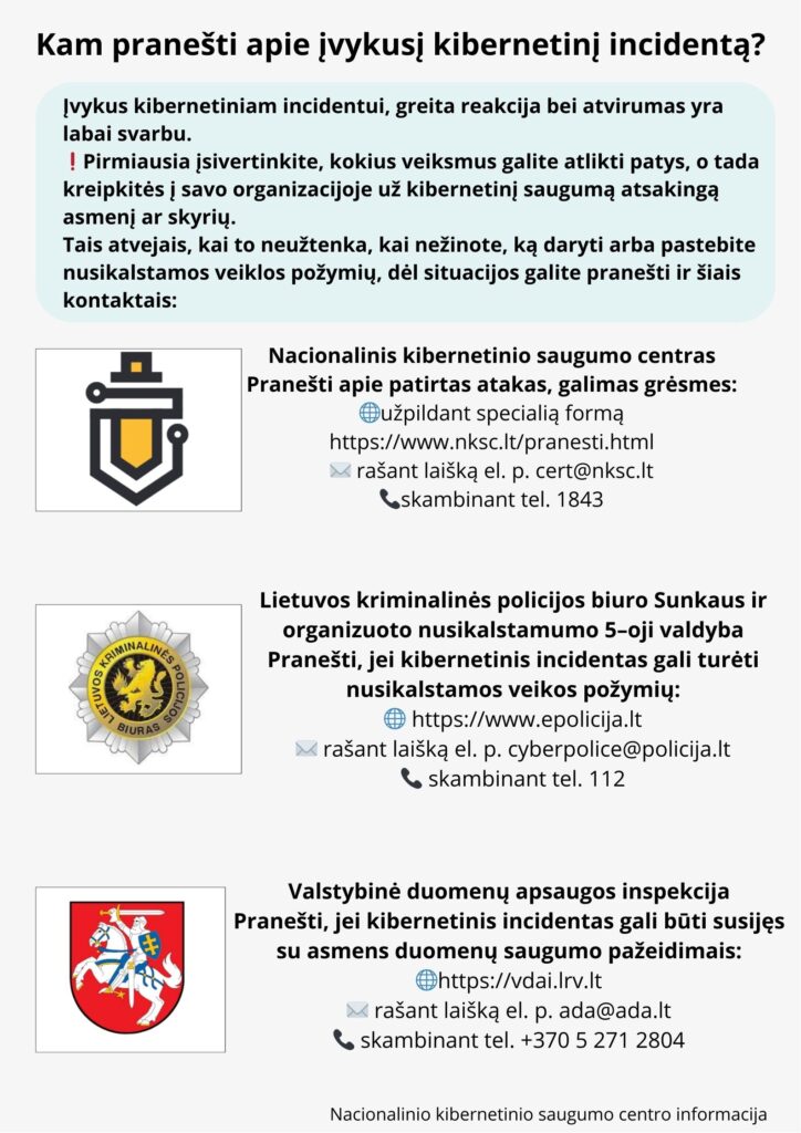 Kam pranešti apie įvykusį kibernetinį incidentą