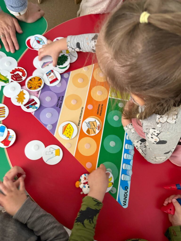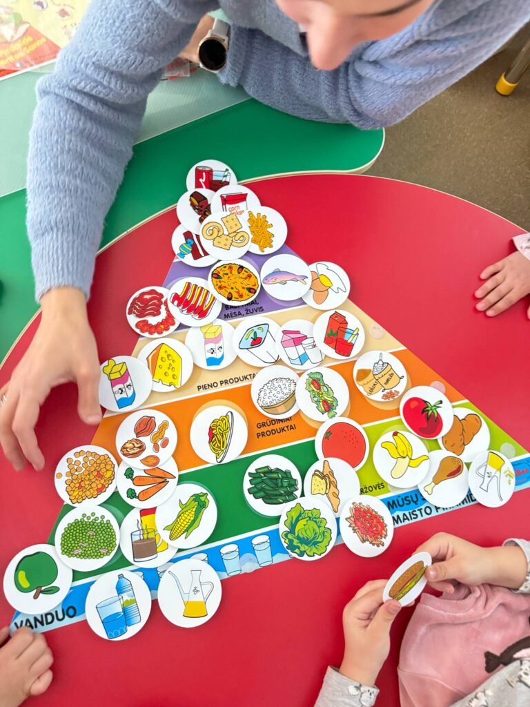 Visuomenės sveikatos specialistė lankėsi Utenos r. Užpalių gimnazijos Vyžuonų skyriuje, kur kartu su vaikais kalbėjosi apie maisto produktų piramidę – aptarė, ką reiškia kiekvienas jos aukštas, kokie produktai turėtų sudaryti mūsų kasdienį racioną, o kurių reikėtų vartoti saikingai. Tačiau, kad viskas būtų dar įdomiau, vaikai pildė didelę spalvingą piramidę – rinko tinkamus paveikslėlius ir klijavo juos į atitinkamas vietas. Vėliau kiekvienas vaikas gavo po „lėkštę“ – spausdintą šabloną, kur galėjo spalvomis pavaizduoti, kokius maisto produktus pasirinktų SVEIKAM patiekalui. Kūrybinės užduoties metu vaikai drąsiai dalinosi savo pasirinkimais: vieno lėkštėje buvo daug vaisių, kito – daržovių, o trečiasis prisiminė ir pilno grūdo produktus. Smagi veikla ne tik suteikė žinių apie sveiką mitybą, bet ir leido vaikams pasijausti tikrais mitybos specialistais. Dėkojame auklėtojai Linai už įamžintas akimirkas