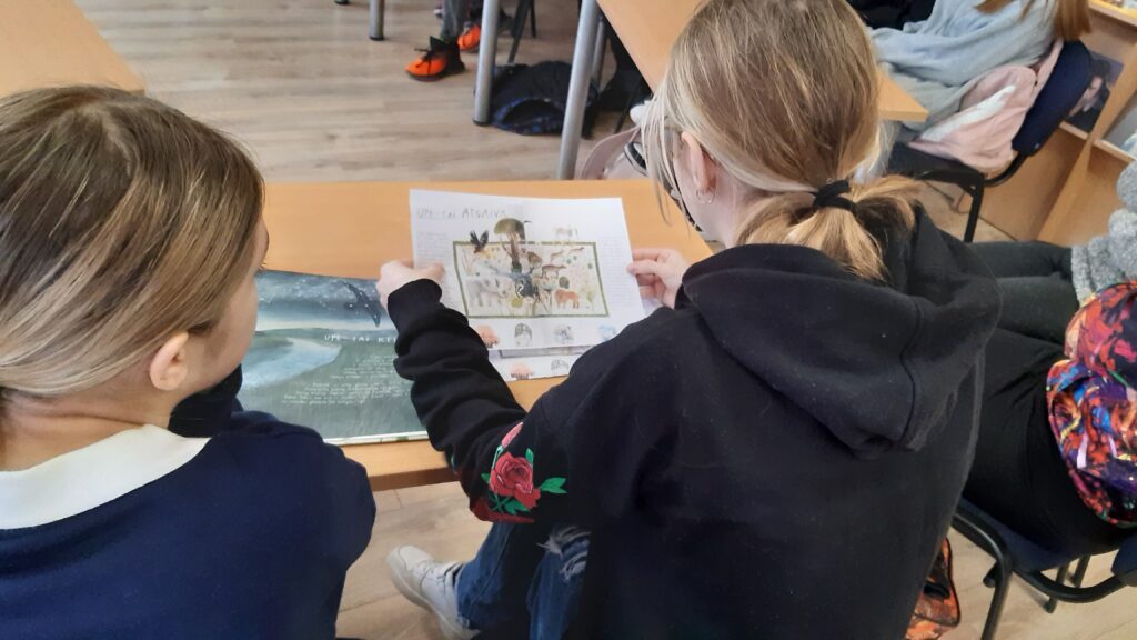 Kovo 20 d. Užpalių gimnazijos penktos ir šeštos klasių mokiniai susirinko bibliotekoje paminėti Pasaulines Vandens ir Žemės dienas. Biologijos mokytoja priminė, kiek turime Žemėje vandens ir kodėl jį reikia branginti ir saugoti, bibliotekininkė papasakojo apie mūsų kaimo upę Šventąją. Pažiūrėjome buvusios gimnazijos mokinės 2008 m. kurtą filmą „Gamta ir ekologija“, aktualų ir mūsų dienomis. Kas yra upė? Tai – namai, siūlo gija, atmintis, mįslė, atspindys, o gal kelias? Ištraukomis iš M. Vaicenavičienės knygos „Kas yra upė?“ pasidalino penktokai ir šeštokai, savo mintis paliko „upėje“, kurią ant sienos bibliotekoje sukūrė vyresnės mokinės. Iš tų minčių kilo
