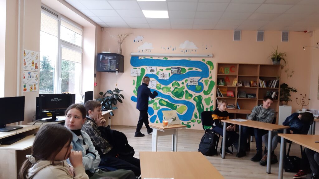 diskusija: ar šiukšlių dėžės parke geras sprendimas, ką geriau palikti miške po žygio- popierinę pakuotę ar stiklo butelį, o ką išmesti pro mašinos langą- kavos puodelį ar banano žievę? Visi pasidalijo savo nuomonėmis, pastebėjimais ir problemos sprendimo būdais, netgi išradimais! Vis dėlto padarėme išvadą, kad kol kas geriausias būdas saugoti savo aplinką- rinkti ir rūšiuoti visas atliekas. Smagi, truputį kitokia pamoka-minėjimas netruko praeiti ir, tikiuosi, pakeis mūsų elgesį, puoselėjant savo namus – gamtą.
