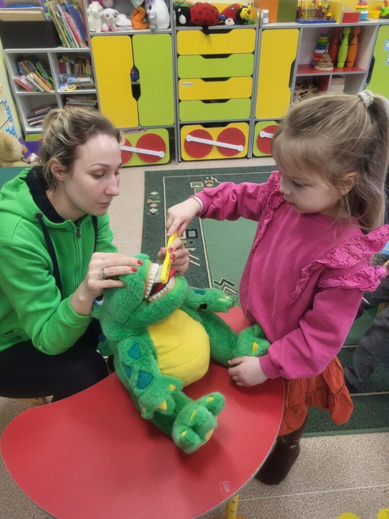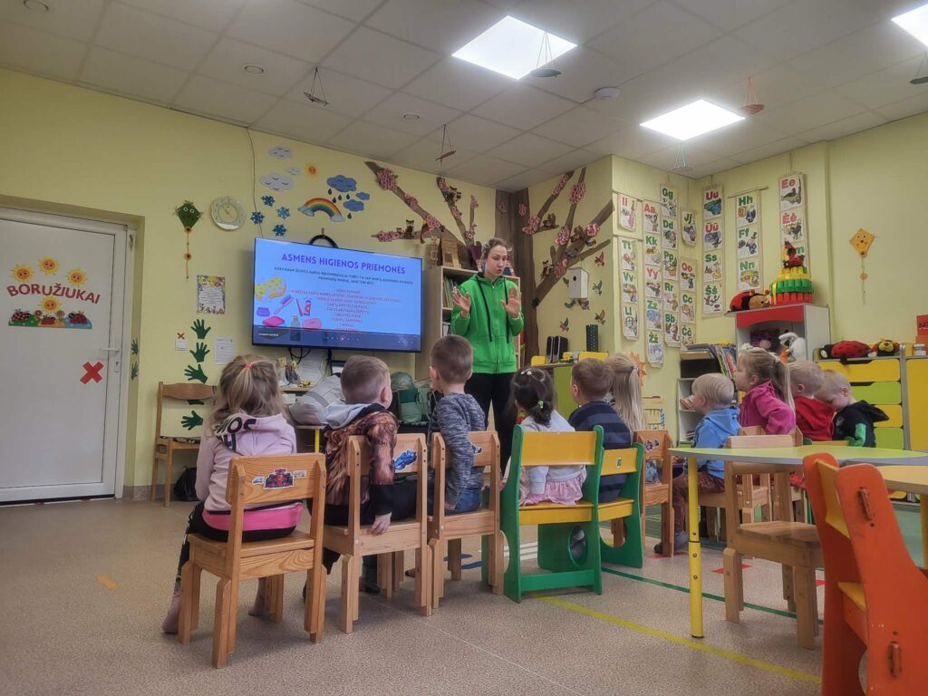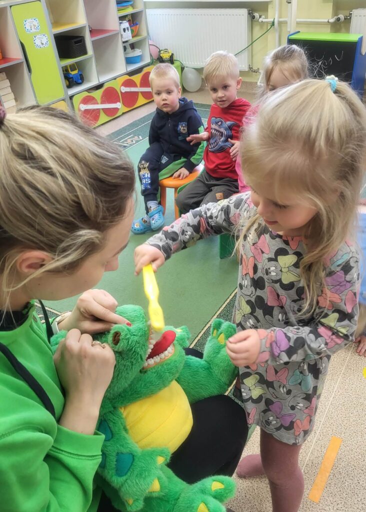 Kovo 20 d. Užpalių gimnazijos Boružiukų ir Vabaliukų grupėse lankėsi visuomenės sveikatos specialistė Gabrielė. Su vaikais kalbėjo apie asmens higieną – rankų, veido, plaukų, kojų, rūbelių bei dantukų priežiūrą. Nors pradžioje kai kuriems žodis „asmens higiena“ atrodė sudėtingas, diskusijos metu vaikai puikiai parodė, kad žino, kaip reikia rūpintis savimi. Veikloje dalyvavo ir drakoniukas, kuris skundėsi neišvalytais dantimis. Vaikai pastebėjo, kad dantų šepetėlis turi būti nedidelis ir su minkštais šereliais. Mažieji taip pat gavo dovanų dantų šepetėlius.
