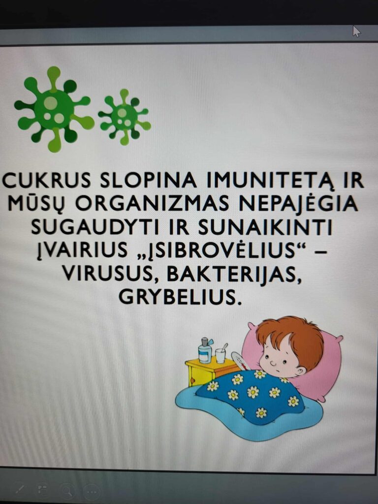Utenos vaikų lopšelio-darželio „Želmenėlis“ vyresniosios B grupės vaikai susitikime su visuomenės sveikatos specialiste aptarė sveikos mitybos taisykles ir principus, prabėgo knygelės „Brokoliukas ir Braškytė sveikatos karalystėje“ puslapiais, atliko užduotėles – labirintuose skaičiavo vandens stiklines, ieškojo teisingo kelio iki sveikos grūdų duonelės bei dėliojo maisto pasirinkimo piramidę.