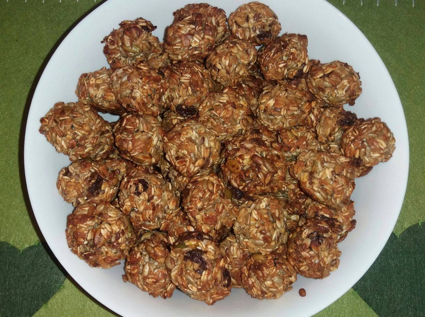 100 g.kokosų drožlių, sezamo sėklų ir moliūgų sėklų,