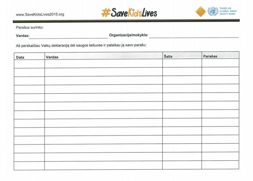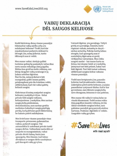 Kviečiame aktyviai dalyvauti prisidedant prie trečiosios Jungtinių Tautų saugaus eismo savaitės minėjimo