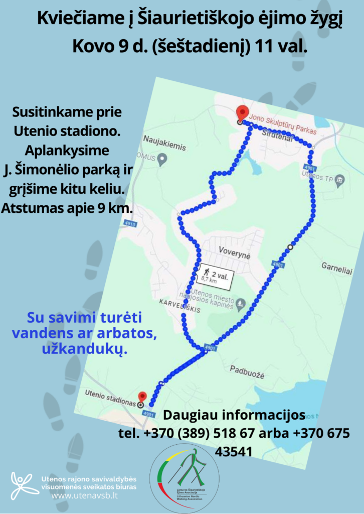 Kviečiame į Šiaurietiškojo ėjimo žygį Kovo 9 d. (šeštadienį) 11 val.