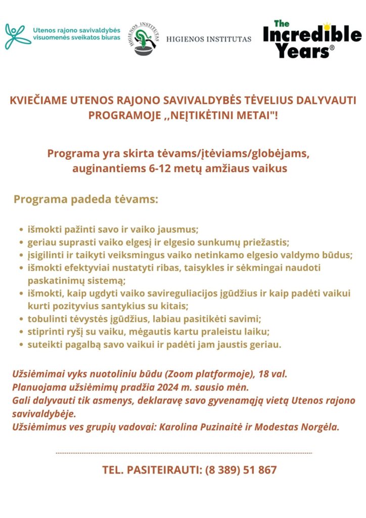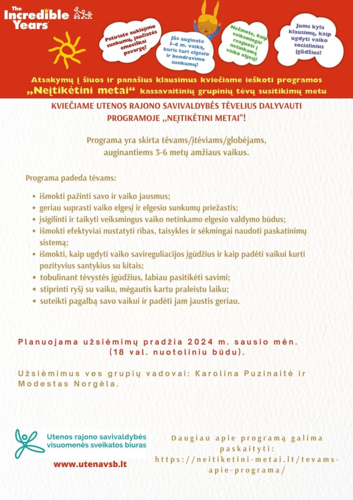 Sveikatos stiprinimo programos tėvams ,,Neįtikėtini metai“ vykdymas