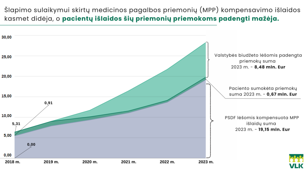 kiekis, o pacientų asmeninės išlaidos šių priemonių priemokoms padengti sumažėjo daugiau
