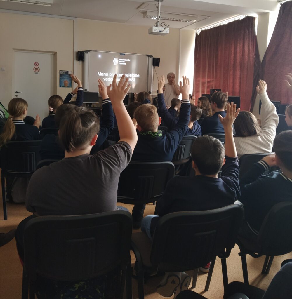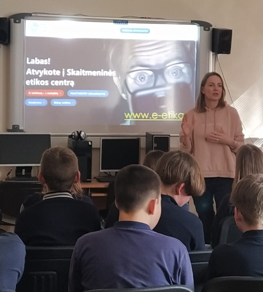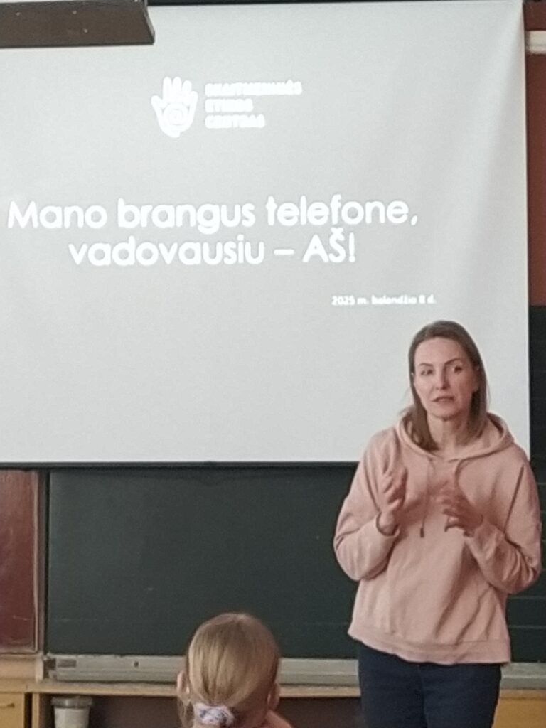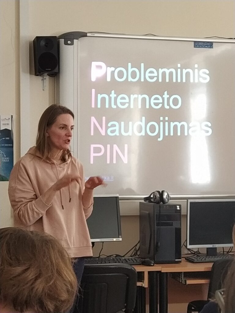 Balandžio 8 d. Molėtų progimnazijoje vyko paskaitos 5-6 klasių mokiniams „Mano mielas telefone – valdau aš!“, kurias organizavo Utenos rajono savivaldybės visuomenės sveikatos biuras. Su mokiniais bendravo VšĮ Skaitmeninės etikos centro lektorės: Rasa Jauniškienė ir Renata Gaudinskaitė. Paskaitų metu mokiniai susidomėję klausėsi ir daug sužinojo: kaip saugiai naudotis telefonu, kaip neviešinti savo asmeninio gyvenimo. Išgirdo patikimos, moksliniais tyrimais grįstos informacijos bei ekspertų patarimų apie tai, kada ir koks naudojimasis išmaniosiomis technologijomis yra naudingas, o kada – gali kelti grėsmę jų fizinei ar psichikos sveikatai, jų saugumui ar reputacijai. Nors nustatyta, kad vien buvimas šalia mobiliojo įrenginio blaško mokinius ir daro neigiamą poveikį mokymuisi, turime mokyti vaikus gyventi ir su technologijomis, ir be jų, mokyti imti tai, ko jiems reikia iš informacijos gausos, bet ignoruoti tai, kas nėra būtina. Socialiniai tinklai, prieinami per telefonus, dažnai skatina socialinį lygimąsi, kibernetines patyčias ir kitus neigiamus reiškinius. Tyrimų duomenimis, klasės be telefonų duoda geresnius rezultatus, mokiniai geriau įsisavina informaciją, mažiau jaučia stresą ir yra labiau įsitraukę į mokymosi procesą. Mokiniui, aktyviai besinaudojančiam internetu, jo naudojimas gali tapti probleminiu. Kada? Kai veiklai internete pradedamas teikti prioritetas, kai ją tampa sunku nutraukti ar sustabdyti ir kai tai pradeda trukdyti kitoms svarbioms žmogaus gyvenimo sritims – santykiams, sveikatai, mokslui, darbui, poilsiui ar kt. – tai vadinama probleminiu interneto naudojimu, PIN. Dažniausios PIN formos yra žaidimai, lošimas, apsipirkinėjimas internetu, pornografijos žiūrėjimas, naršymas, socialinių tinklų naudojimas ir kt. PIN yra elgesio priklausomybė, lyginama su įprastinėms medžiagų – alkoholio, narkotikų, tabako, azartinių lošimų – priklausomybėms. Domėkimės, sužinokime daugiau! Naujų – skaitmeninės higienos – įgūdžių turime mokytis kiekvienas, besinaudojantis internetu.