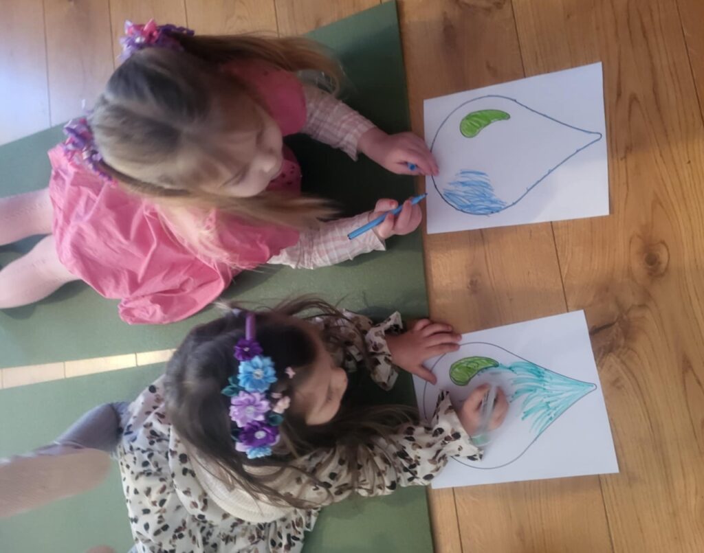 Kūrybinės veiklos metu vaikai spalvino vandens lašelius, o pertraukėlių metu gurkšnojo vandenį iš savo gertuvių, formuodami sveikus kasdienius įpročius.