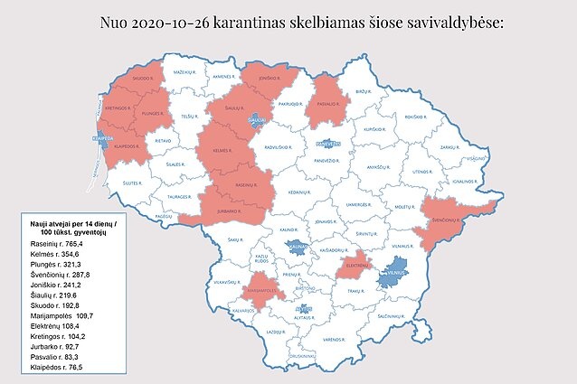 Ateinančią savaitę, nuo spalio 26 iki lapkričio 1 d. imtinai, remiantis naujuoju šviesoforo principus, raudonajai zonai priskiriamos dar aštuonios šalies […]
