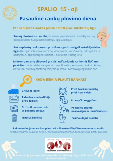 Spalio 15 d. minima Pasaulinė rankų plovimo diena, todėl Užkrečiamųjų ligų ir AIDS centras (ULAC) primena, kad rankų higiena yra […]