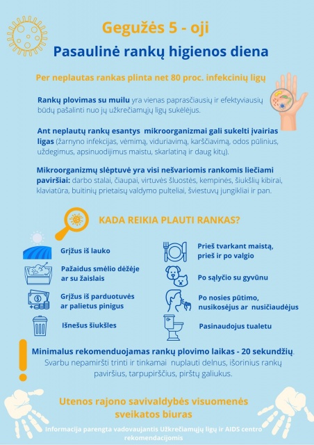 Užkrečiamųjų ligų ir AIDS centras (ULAC) gegužės 5-ąją kviečia paminėti Pasaulinę rankų higienos dieną ir primena, kad geri rankų higienos […]