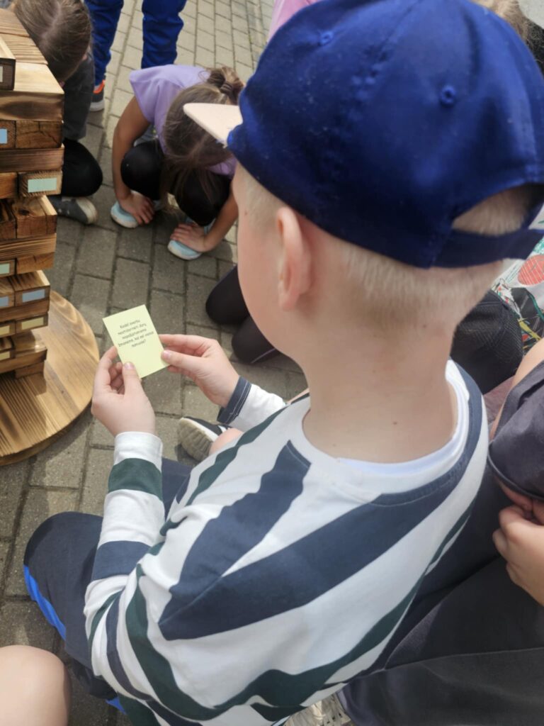 2025 m. gegužės 27 d. Aukštakalnio pradinės 3b klasės mokiniai dalyvavo netradicinėje fizinio ugdymo pamokoje, kurią vedė mokytoja Greta ir visuomenės sveikatos specialistė Sigita. Pamoka vyko kitaip nei įprastai – vaikai buvo pakviesti į aktyvų ir įdomų užsiėmimą gryname ore. Mokiniai turėjo patys surasti mokyklos teritorijoje išslapstytas detales ir iš jų pastatyti bokštą. Tačiau čia iššūkiai nesibaigė – norėdami, kad bokštas augtų aukštyn, jie turėjo įveikti „smegenų mankštą“: atsakyti į klausimus apie fizinį aktyvumą, sveiką mitybą, asmens higieną bei saugų elgesį namuose ir gatvėje. Ši pamoka ne tik suteikė judėjimo džiaugsmo, bet ir pagilino mokinių žinias apie sveikatą.