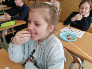 Gegužės 2 d. Krašuonos progimnazijos pirmų ir antrų klasių mokiniai dalyvavo nuotolinėse paskaitose ,,Kas suvalgys lėčiau?“, kurias nuotoliu vedė vaikų ir paauglių sveikatos ugdymo specialistas, emocinio intelekto praktikas, sveikatos elgsenos treneris, intervencinės programos paaugliams su antsvoriu sumanytojas Artiomas Šabajevas. Paskaitų metu vaikai buvo supažindinti su atidaus valgymo nauda bei galėjo patys sudalyvauti sąmoningo valgymo procese. Nekasdieniškas valgymo ritualas užtruko kiek ilgiau, nei įprastai. Lektoriaus teigimu sąmoningas, arba atidus, valgymas yra pasitelkimas visų pojūčių į tai, kas valgoma, pasitenkinimas skoniu ir suvokimas, kad tai maitina kūną. Lėčiau valgyti ir labiau įsisavinti maisto skonį įmanoma tik tada, kai valgoma mažesniais kąsniais ir ilgai kramtoma, tačiau kasdienybėje tai retai praktikuojama. Be valgymo proceso, lektorius pabrėžė ir fizinio aktyvumo naudą bei būtinybę judėti kasdien. Su maistu gaunama energija turi būti išnaudojama ir teikti kūnui naudos.