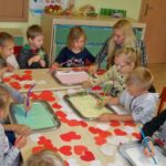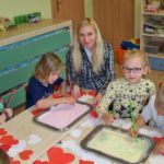 O darželiuose su pakilia nuotaika vaikučiai piešė lankstė ir klijavo širdeles.