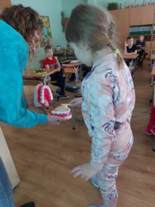 2022 balandžio 7 d. Utenos Aukštakalnio progimnazijos “Žiburio” skyriaus 1b klasės mokiniai dalyvavo pamokoje apie burnos higieną. Pasikartojo dantų priežiūros taisykles, sužinojo, dėl ko genda dantukai ir praktiškai treniravosi juos valyti.