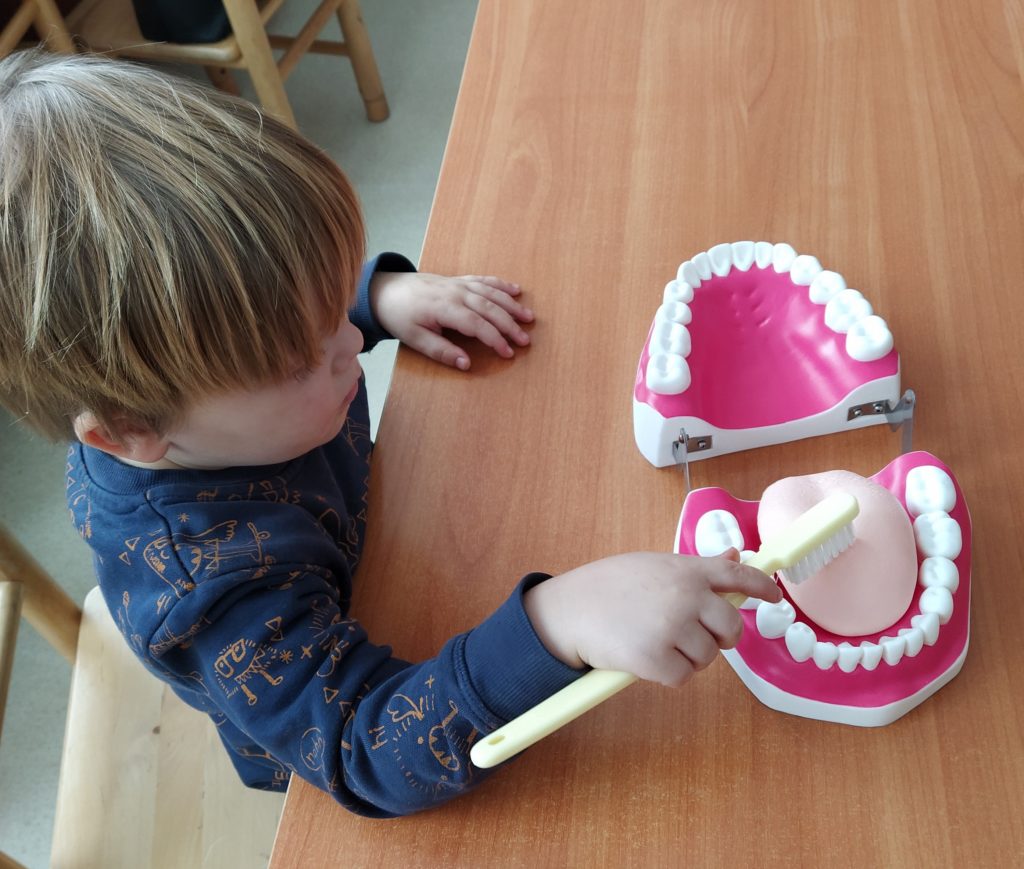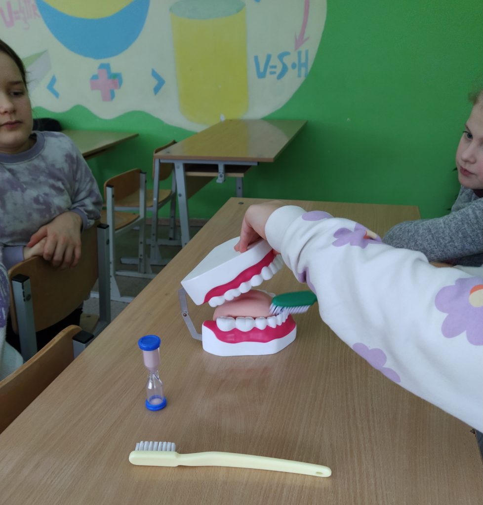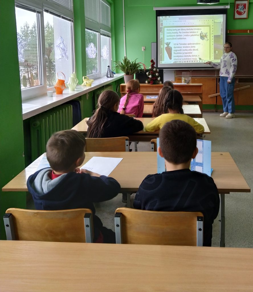 Kiekvienas Molėtų r. A. Jaroševičiaus gimnazijos Joniškio skyriaus mokinys ir darželinukas gavo po dovanėlę – dantų šepetėlį, o pirmokai – ir informatyvius  lipdukus, kaip raginimą valytis dantukus,  kad nepamirštų, ryte ir vakare, išsivalius dantukus, priklijuoti lipduką. Sveikatos priežiūros specialistė Bronė Grigonienė papasakojo mokiniams apie burnos higieną, apie tai kiek kartų per dieną būtina valyti dantukus, koks turi būti pirmokams dantų šepetėlis bei kodėl taip svarbu yra nuo vaikystės valyti bei prižiūrėti dantukus. Pamokos eigoje pažiūrėjome filmuką „Sveiki dantukai“, mokiniai vieni kitiems pasakojo, pristatinėjo skaidres apie sveikus dantis, mokėsi taisyklingai juos valyti. Pamokėlės pabaigoje pasikartojom įgytas žinias, spėjome mįsles bei kartu padainavome „Dantukų dainelę“. Mokinukai pasižadėjo niekada nepamiršti valyti ir prižiūrėti dantukus, kad niekada jų neskaudėtų.