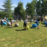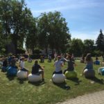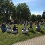 Po teorijos, aikštėje vyko mankšta su gimnastikos kamuoliais. Buvo linksma, įdomu ir žinoma, kitaip. Gerai pajudėję ir atsigėrę vandens, mokiniai grįžo į mokyklą.