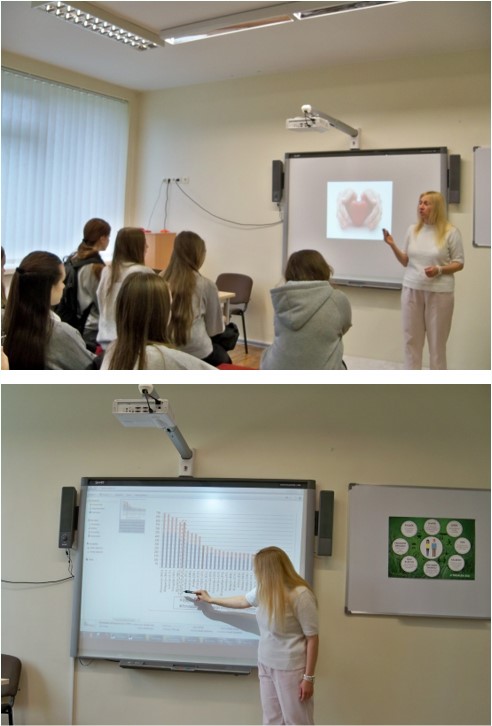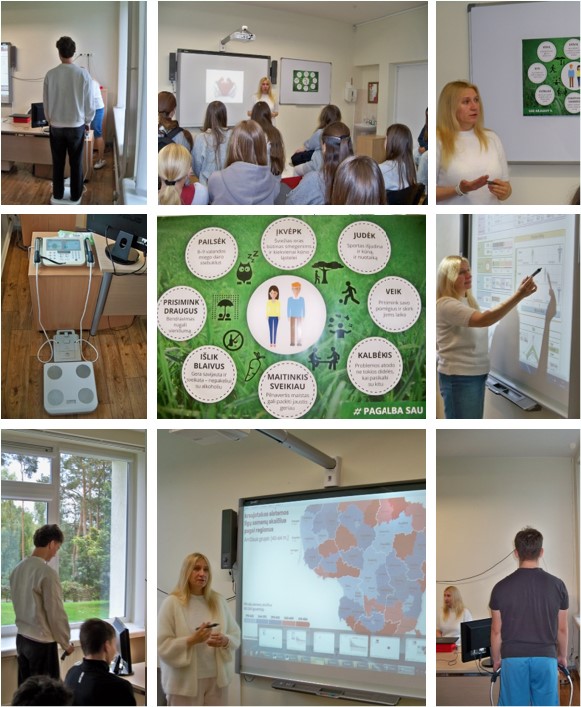 Rugsėjo 29-oji – Pasaulinė širdies diena primena, kad svarbu rūpintis širdies sveikata. Tačiau, Higienos instituto duomenimis, Lietuvoje daugiau nei pusė visų mirčių yra susijusios su širdies ir kraujagyslių ligomis. Ši tendencija beveik nesikeičia ne tik Lietuvoje, bet ir Europoje. Todėl visuomenės sveikatos specialistė Utenos Dauniškio gimnazijoje vedė paskaitas-diskusijas I – IV klasių mokiniams. Užsiėmimų metu buvo diskutuota: kodėl tiek daug žmonių serga širdies ligomis, kokios yra jų priežastys ir profilaktika. Diskusijos pabaigoje, padedant visuomenės sveikatos specialistei, norintieji galėjo įsivertinti savo kūno kompoziciją kūno masės analizatoriumi. Aktyviausi užsiėmimo dalyviai buvo apdovanoti dovanėlėmis – atmintukais.