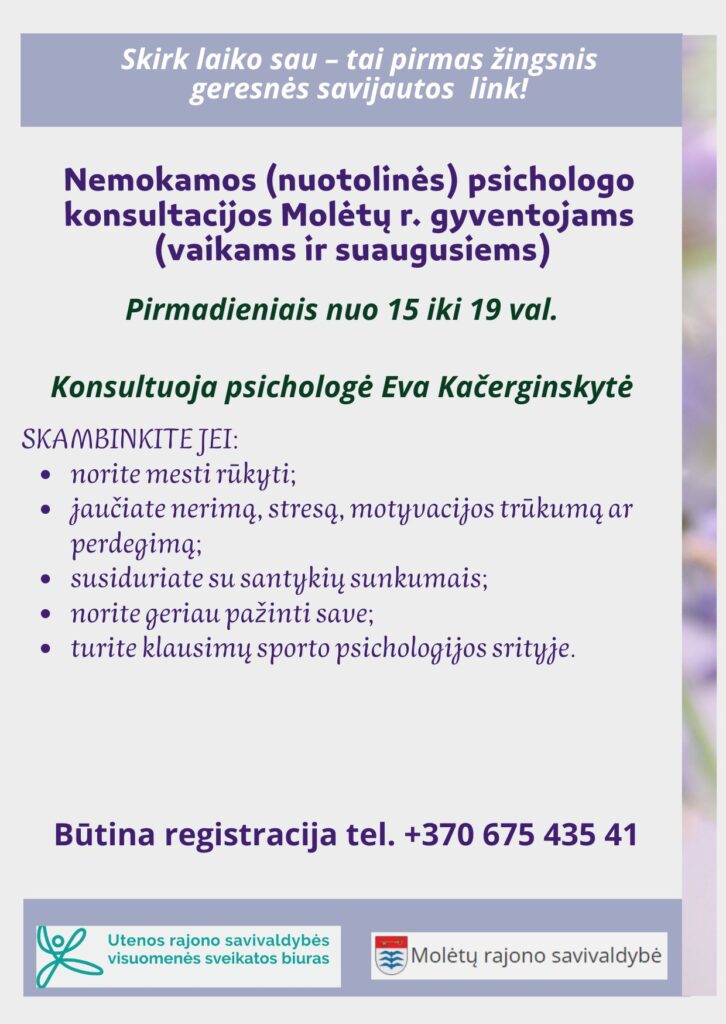 Kviečiame Molėtų rajono gyventojus aktyviau registruotis ir pasinaudoti profesionalia pagalba.