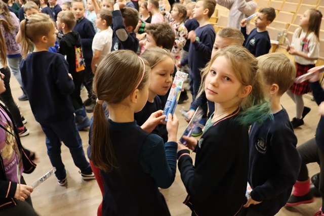 Utenos Krašuonos progimnazijos visi antrų klasių mokiniai kovo 6 d. dalyvavo renginyje ,,Pasitikime pavasarį su šypsena“. Dažnai plati, balta šypsena asocijuojasi su sveikais dantimis, pozityvia nuotaika ir noru pasidalinti gera emocija su šalia esančiais. Apie tai ir buvo šis renginys – prisiminti ir pademonstruoti žinias lemiančias sveiką šypseną, gauti sveikus taškus – morkas ir pasidžiaugti vis pilnėjančiu gėrybių krepšeliu bei pasidalinti džiugia emocija, kurią kelia judesys, bendrystė ir žiniomis uždirbtos dovanos – spalvoti ir kokybiški dantų šepetėliai. Linkime, kad ši prasminga dovanėlė  skatintų vaikus savo veiksmais prisidėti prie sveikos ir natūralios šypsenos išsaugojimo.