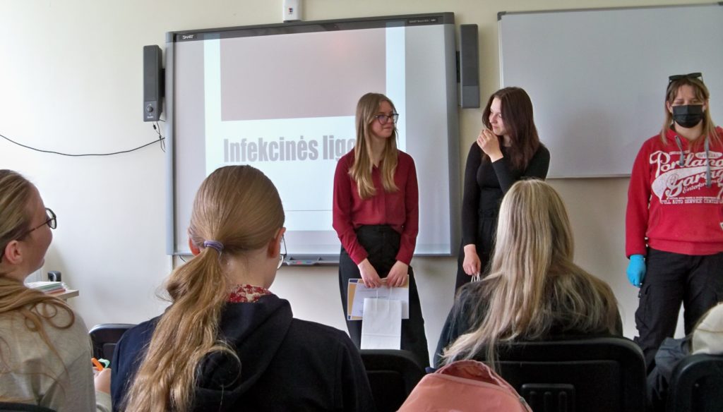 Gegužės 16 dieną Dauniškio gimnazijos I c klasės mokiniams visuomenės sveikatos specialistė K. Jasiūnienė vedė paskaitą – diskusiją tema „Asmens higiena ir užkrečiamos ligos”. Paskaitos – diskusijos metu buvo akcentuojama rankų ir asmens higiena, rūbų bei aplinkos švara, kosėjimo ir čiaudėjimo etiketas, imunizacijos didinimas ir vakcinacijos svarba. Vyko metodinės pratybos – užsiėmimai, norint išsiaiškinti kaip plinta užkrečiamos ligos taikant prevencines priemones ir be jų. Įsitikinta, kad prevencinės priemonės turi didžiulę įtaką siekiant sumažinti infekcinių ligų plitimą. Diskutuota, kad užkrečiamų ligų išvengsime, jei laikysimės asmens higienos, nesusitiksime su segančiaisiais, susirgę neisime į mokyklą, vėdinsime patalpas, stiprinsime imunitetą. Dėkojame aktyviai dalyvavusiems mokiniams ir linkime saugoti savo bei artimųjų sveikatą.