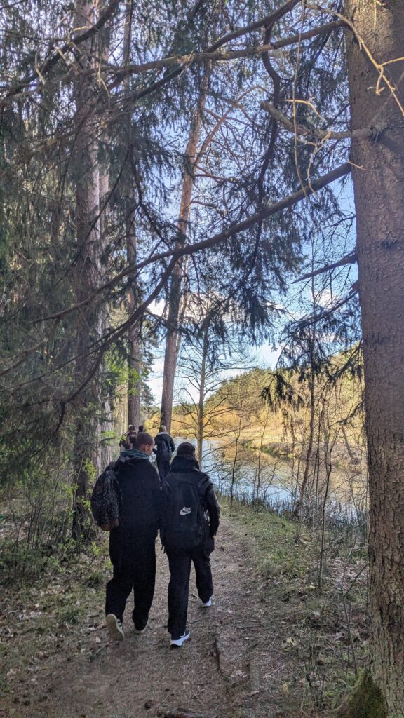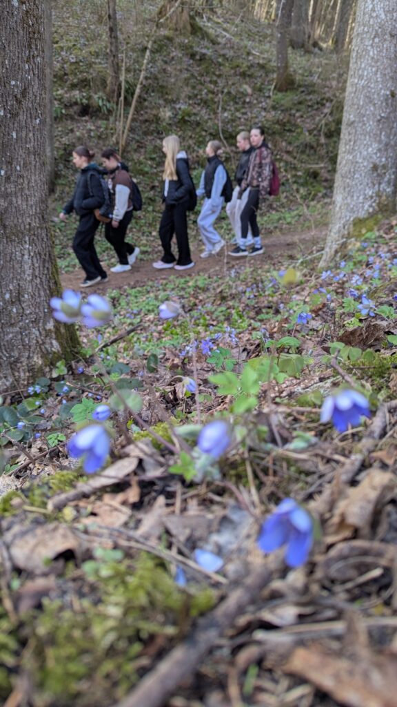 Dešimties kilometrų žygis driekėsi palei Šventosios upę. Nuostabaus grožio, pavasariškai bundanti gamta glostė akis žibuoklių mėlyne, geltonų ir baltų plukių subtilumu bei kitais violetinių ir gelsvų atspalvių žiedų paklotais. Švelni žalia, kuria puošiasi sprogstantys medžių lapeliai ir nekaltai besikalanti liauna žolytė, veikė raminančiai, įkvepiančiai. O kur dar paukščių sutiktuvių maršai, smagiai čiurlenančių upeliukų virpėjimas bei kartas nuo karto išlendanti ir šiluma kiekvieną paliečianti saulutė.