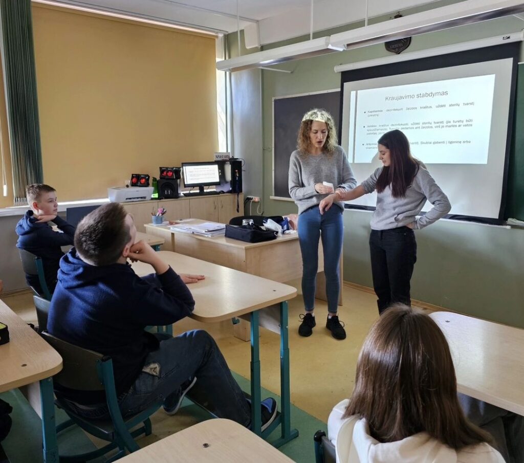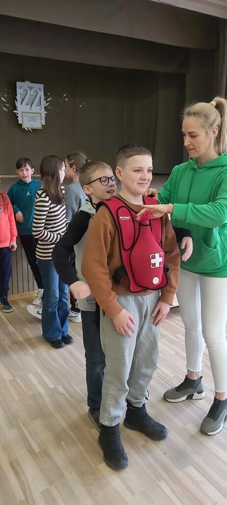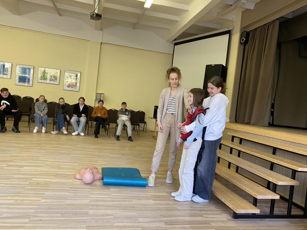 Šių metų kovo-balandžio mėnesiais Utenos Aukštakalnio progimnazijos visuomenės sveikatos specialistė Elvina per gyvenimo įgūdžių pamokas vedė pirmosios pagalbos užsiėmimus visiems 5-tų ir 7-tų klasių mokiniams. Penktokai, atidžiai klausydami specialistės, mokėsi pradinio žmogaus gaivinimo bei pirmosios pagalbos teikimo užspringimo atveju. Kiekvienas mokinys treniravosi atlikti krūtinės ląstos paspaudimus ant manekeno bei mėgino išgelbėti užspringusį draugą pasinaudojant užspringimo liemene. Septintokai mokėsi stabdyti kraujavimą – uždėti spaudžiamąjį tvarstį ir naudoti turniketą. Taip pat teisingai reaguoti į įvairias kitas sveikatos būkles, tokias kaip: alpimas, alergijos, anafilaksinis šokas, nušalimas, hipertermija, nudegimas. Šios žinios ne tik suteikia saugumo jausmą, bet ir padeda išlikti ramiems stresinių situacijų metu.