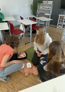 Užsiėmimų metu mokiniai mokėsi atlikti pradinį gaivinimą naudodami manekeną, suprato, kaip svarbu laiku ir taisyklingai pradėti širdies masažą bei dirbtinį kvėpavimą. Taip pat išmoko naudotis automatiniu išoriniu defibriliatoriumi ir sužinojo, kada jo prireikia.