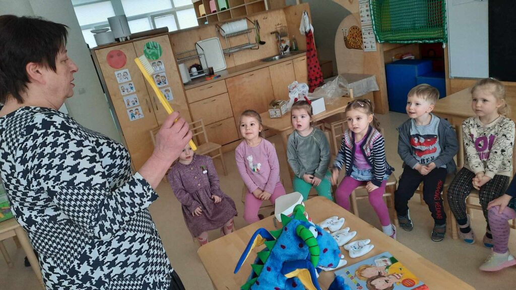 Vasario mėnesį Utenos vaikų lopšelyje – darželyje „Pasaka“ vyko projektas „Pažink profesijas“. Projekto metu ugdytiniai susitiko su visuomenės sveikatos specialiste, vykdančia sveikatos priežiūrą mokykloje. Ji vaikus supažindino su savo profesija ir papasakojo apie traumas, nelaimingus atsitikimus, kaip jų išvengti, mokė suteikti pirmąją pagalbą, paaiškino sveikos mitybos ir tinkamos burnos higienos svarbą, aptarė užkrečiamųjų ligų prevencijos būdus.