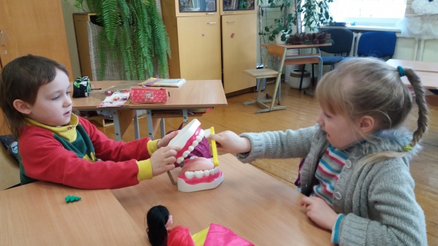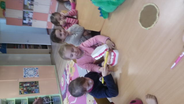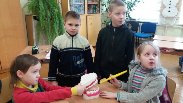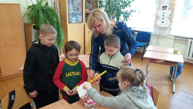 Saldutiškio pagrindinės mokyklos ir Utenos vaikų lopšelio – darželio ,,Želmenėlis” vaikučiai dalyvavo užsiėmimuose ,,Kad dantukai būtų sveiki”. Jų metu žiūrėjo mokomuosius filmukus, klausėsi visuomenės sveikatos priežiūros specialistės Audronės patarimų, valė dantukus šauniesiems Bezdžionėlei ir Drakoniukui.