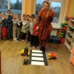 Vaikų lopšelyje – darželyje „Saulutė“ ir lopšelyje – darželyje „Gandrelis“ pasakų personažai voverytė, tigriukas, kačiukas ir pelytė mokė vaikučius kaip saugiai elgtis gatvėje, kaip pereiti per pėsčiųjų perėją. Grupėse vyko pokalbiai ir pamokantys žaidimai. Akciją organizuoti jai padėjo Dauniškio gimnazijos III klasės mokinės. Už teisingai pereitą perėją vaikai gavo dovanų atšvaitus-žaisliukus.