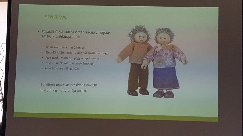 Balandžio 10 d. vykusi paskaita ,,Tikrieji senjorų sveikatos iššūkiai”, buvo aktuali ir jaunesnio amžiaus žmonėms. Gydytoja Jurga Misevičienė pristatė, kad senėjimo procesas prasideda perkopus 30 metų ribą. Kasmet senėjimo pagreitis išauga po 1 proc. Ir tik vienintelis intelektas išlieka stabilus visą gyvenimą (išskyrus tam tikrus susirgimus). Lektorė paminėjo, kad pagrindiniai veiksniai, kurie įtakoja mūsų sveikatą, veikia ir šlapimo sistemos veiklą: judėjimas, mityba, žalingų įpročių neturėjimas. Judėdami galime 30 proc. sumažinti piktybinių navikų vysymąsi, padidinti antiuždegiminių medžiagų gamybą, sumažinti svorį, o judant ore, kaupiasi vitaminas D, mažėja cholesterolio kiekis kraujyje. Reikėtų atkreipti dėmesį ir vengti pro uždegiminės dietos: cukrus, transriebalai, omega – 6 perteklius, akrilamidai, aromatiniai hidrokarbonatai. Anti uždegiminė dieta: omega -3, polifenoliai, probiotikai, skaidulos, jūros gėrybės. Polifenolių gausu uogose, vaisiuose, daržovėse, alyvuogių aliejuje.