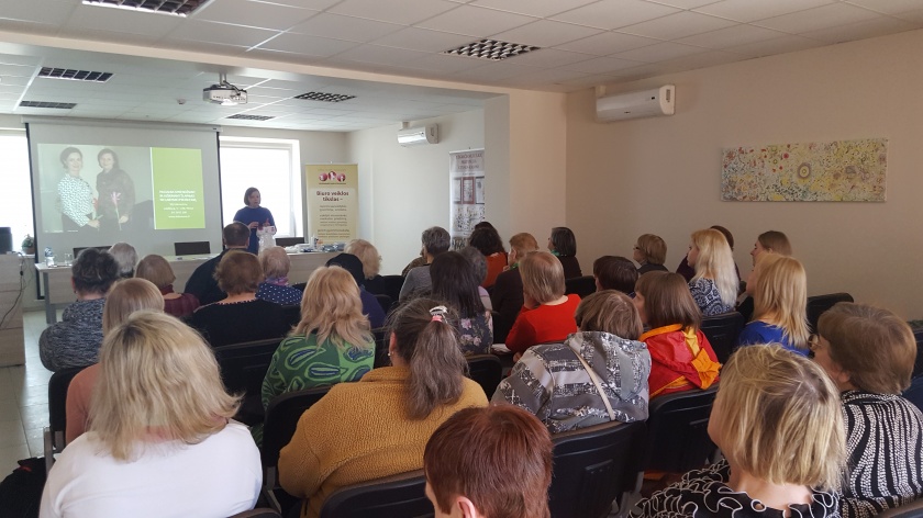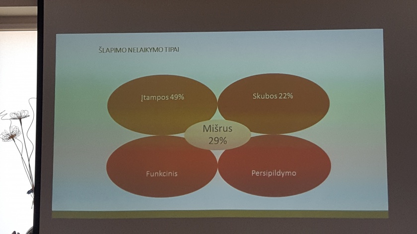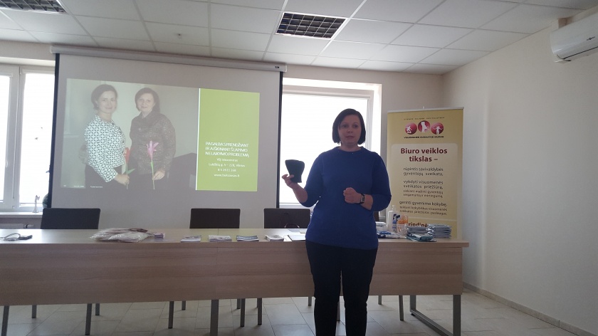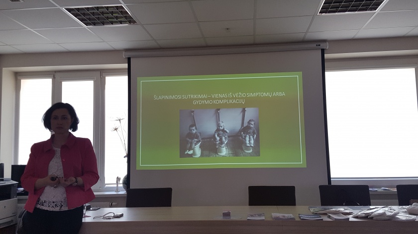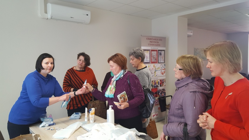 Higienos ir slaugos priemones pristatė slaugytoja Jolita Šukienė. Kuri kiekvienam dalyviui padovanojo po porą įklotėlių. Dalyviai gavo atsakymus į individualius klausimus. Gyvenimas yra paprastesnis, kai tu žinai, kur kreiptis pagalbos ir kad tokių kaip tu aplinkui yra, tačiau dažnas bijo prasitarti apie jį kamuojantį šlapimo nelaikymą.
