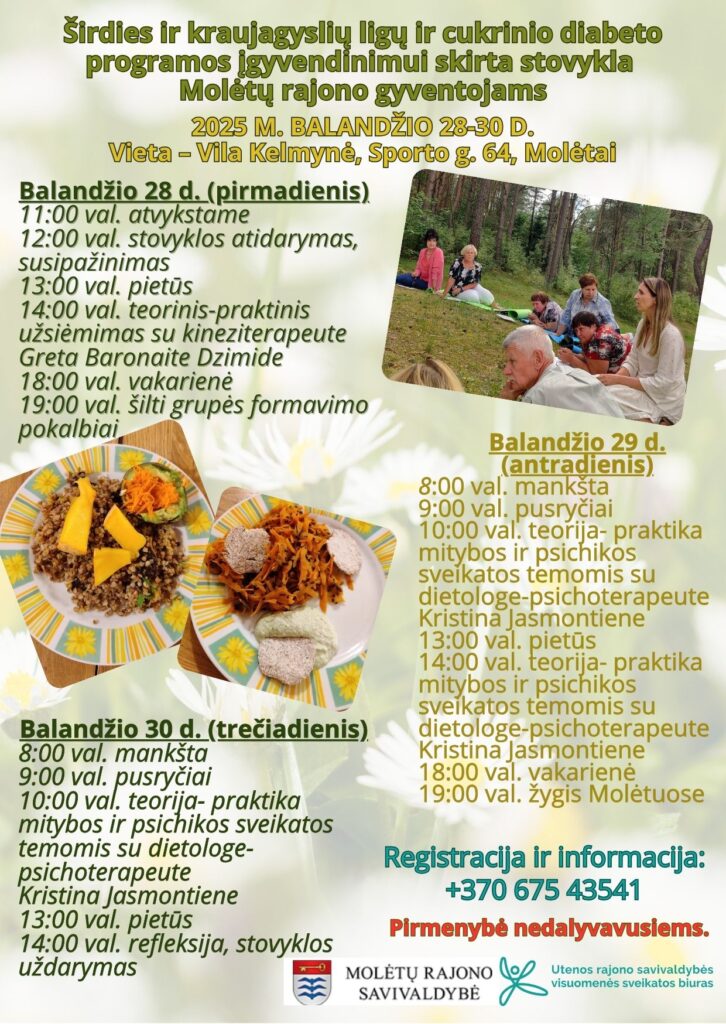 Širdies ir kraujagyslių ligų ir cukrinio diabeto programos įgyvendinimui skirta stovykla Molėtų rajono gyventojams